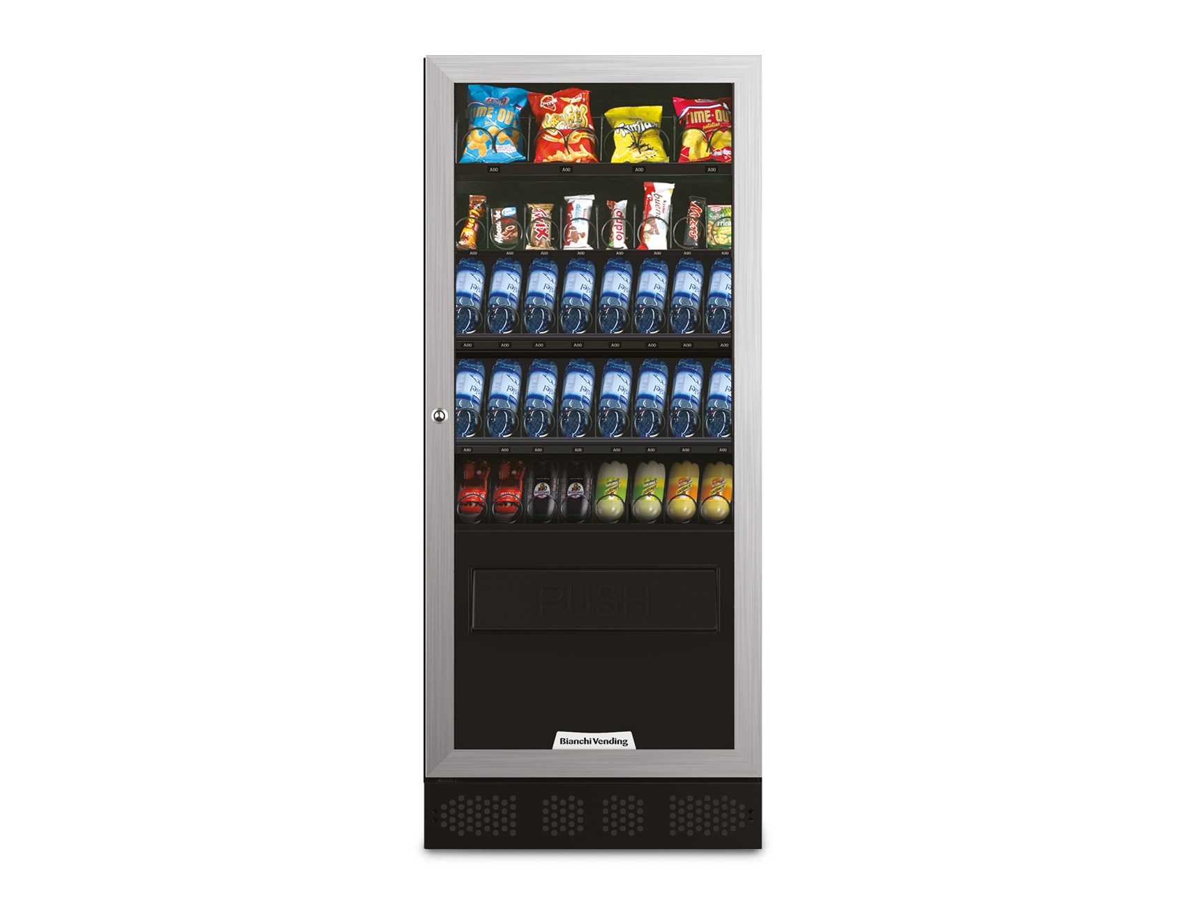 - Largo vano erogazione ”push” per prodotti di grandi dimensioni.