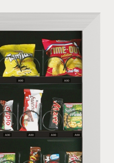ARIA M, distributore automatico a spirali refrigerato per la vendita di snack, panini, prodotti freschi, lattine e bottiglie.